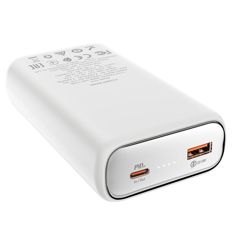 Ngân hàng điện di động Q1A Kraft 20000mAh, đầu vào Type-C 20W (PD) và đầu ra USB 22.5W / Type-C 20W (PD), hỗ trợ PD3.0, QC3.0 / 2.0, FCP / SCP, AFC, VOOC, DASH và các giao thức tính phí khác