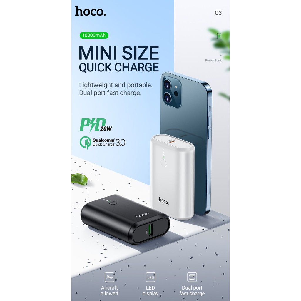 Điện Thoại & Phụ Kiện > Pin sạc dự phòng > 5000 - 10000mAh || Pin sạc dự phòng Hoco Q3 Mayflower 10000mAh lõi Li-polymer, hỗ trợ QC 3.0 và PD 20W TypeC - Hàng chính hãngCòn hàng