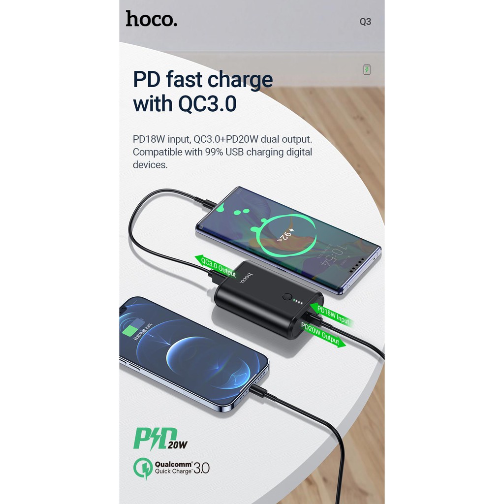 Pin sạc dự phòng Hoco Q3 Mayflower 10000mAh lõi Li-polymer, hỗ trợ QC3.0 và PD20W Type-C - Hãng phân phối chính thứcThông số: