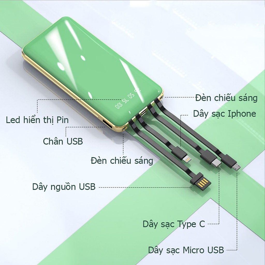 - Pin sạc dự phòng tích hợp 4 đầu sạc