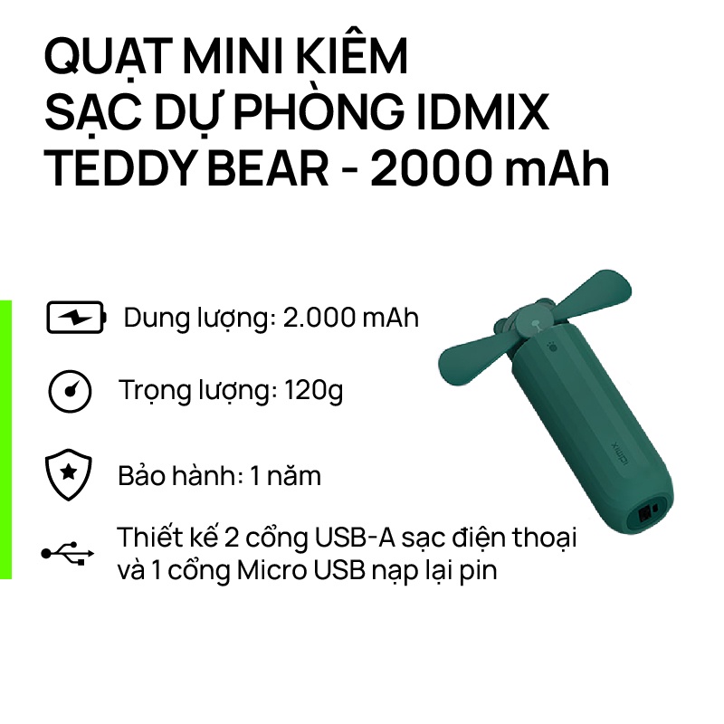 - Tên sản phẩm: Quạt mini pin dự phòng Idmix