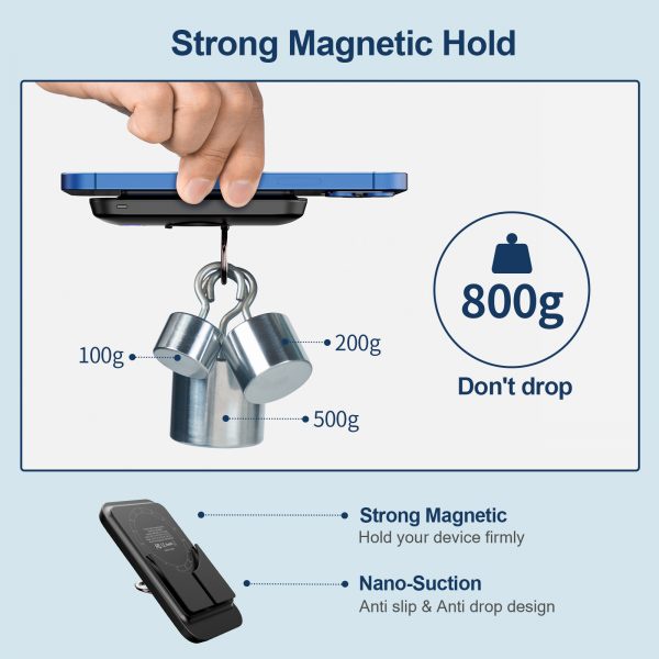 Pin sạc dự phòng iWalk Magnetic 6000mAh – DBL6000M sở hữu vòng nam châm mạnh mẽ được tích hợp sẵn để gắn chạt vào điện thoại của bạn. Với tính năng hấp phụ từ tính & nano, bạn có thể dán chặt pin dự phòng vào iPhone 12 và các điện thoại thông minh khác với khả năng bảo vệ kép. Lực hút vô cùng chắc chắn để bạn không phải lo bị trượt ngay cả khi đang đi trên đường sốc nảy.