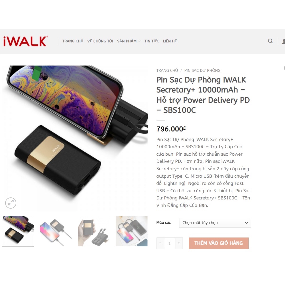 Giới thiệu Pin Sạc Dự Phòng iWALK Secretary+ 10000mAh – Hỗ trợ PD – QC 3.0 -SBS100C - 3 Sạc Cổng - Kèm Cáp Sạc - Hàng Chính Hãng VN