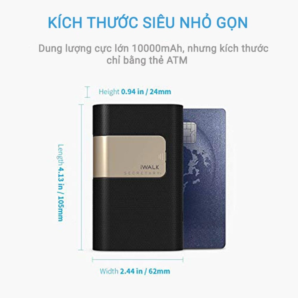 Pin Sạc Dự Phòng iWALK Secretary+ 10000mAh – Hỗ trợ PD – QC 3.0 -SBS100C - 3 Sạc Cổng - Kèm Cáp Sạc - Hàng Chính Hãng VN