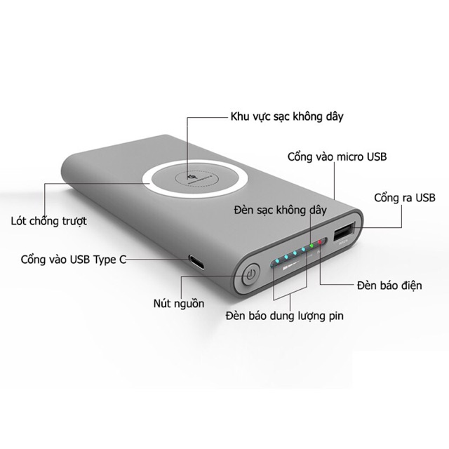 Điện Thoại & Phụ Kiện > Pin sạc dự phòng > 5000 - 10000mAh || Pin sạc dự phòng không dây 10.000 mAhCòn hàng