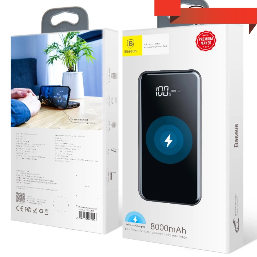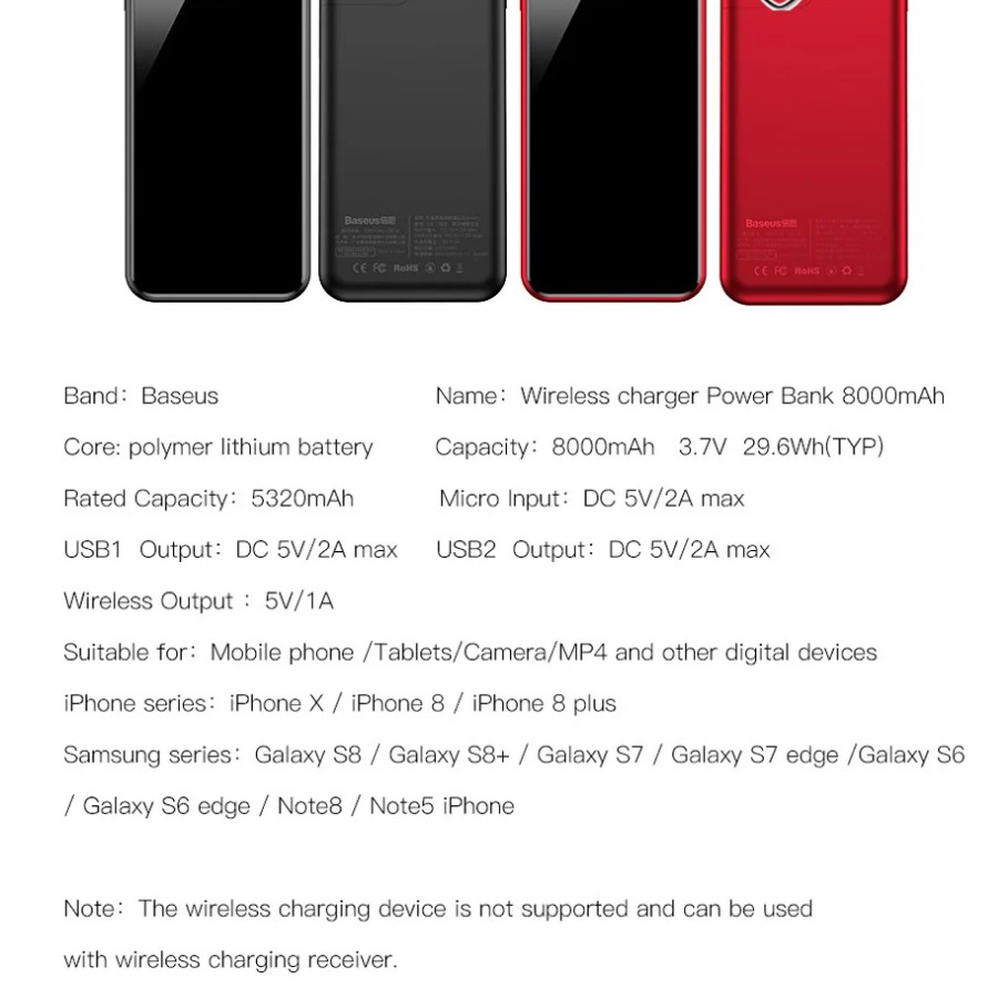 Pin sạc dự phòng không dây 8000 mAh Baseus cho iPhoneX (LCD Qi Wireless Charger, 2A, Power Bank) - LV197✳️ Thông số: