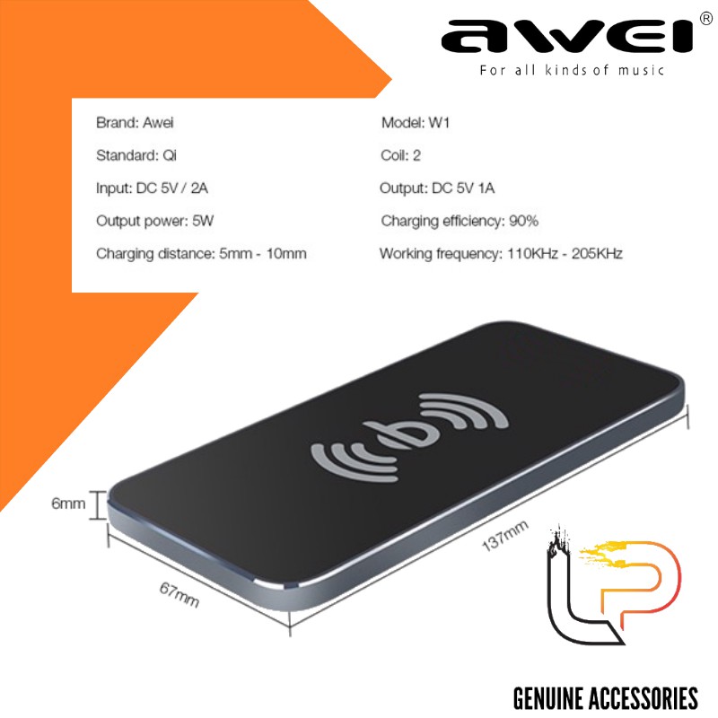 Đế sạc không dây Awei W1Chất liệu: hợp kim nhôm, silicone, PC