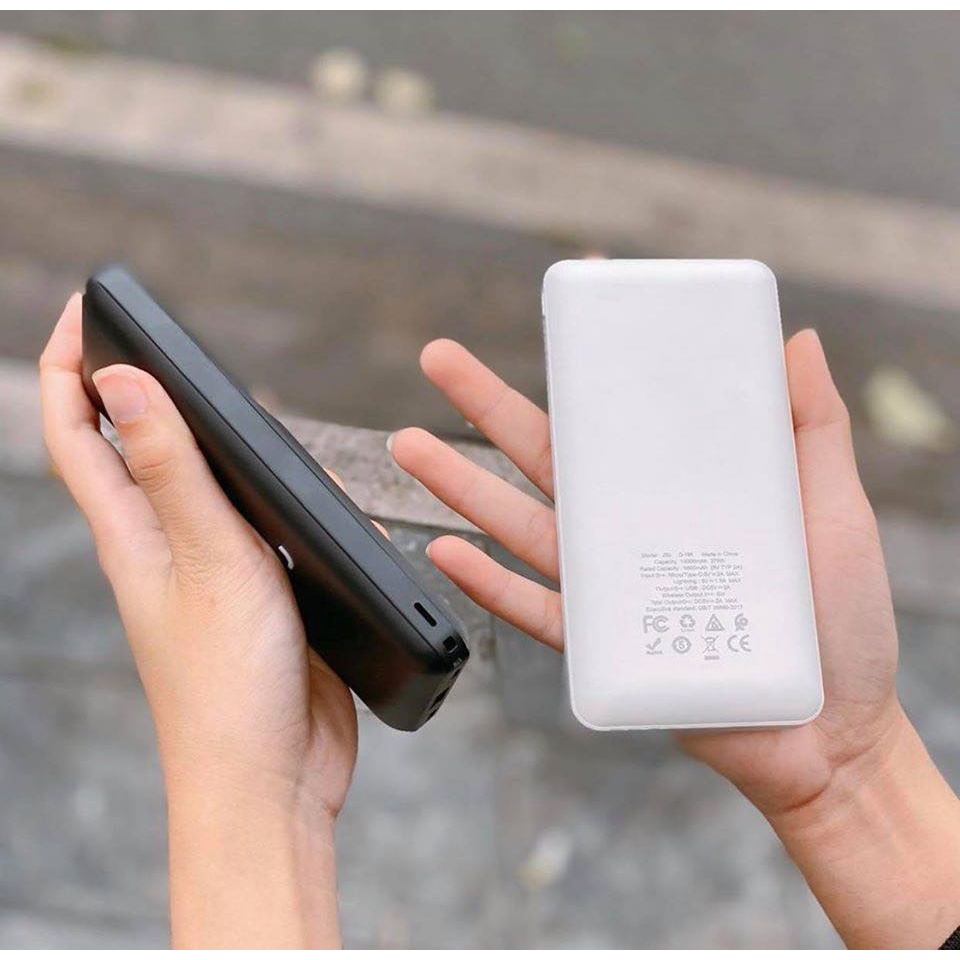 - Dung lượng 10000mAh với hỗ trợ sạc không dây tiện lợi có thể sạc nhanh mọi loại máy có hỗ trợ sạc không dây (VD: Samsung S8/9/10, Note 8/9/10, iPhone X trở lên,...), ngoài ra pin còn có 1 cổng USB giúp sạc các thiết bị khác thông qua dây sạc.