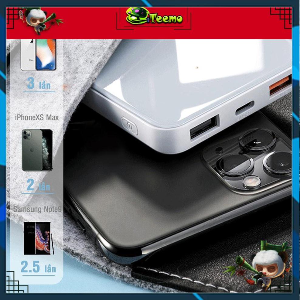 - Dung lượng thực 10.000 mAh, sạc được 3 lần iPhone X, 2.5 lần Samsung galaxy Note 9.2 lần iphone Xs max, Xs max pro.
