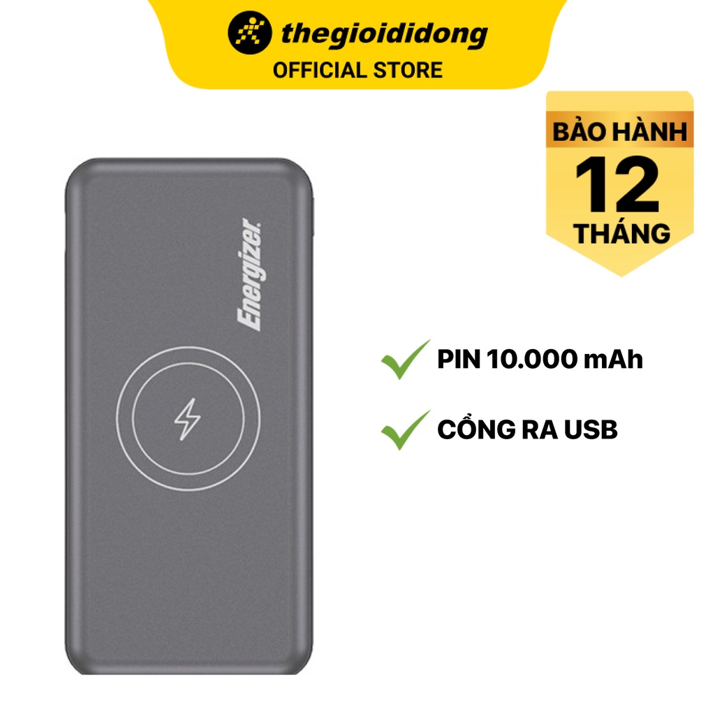 Pin sạc dự phòng không dây Energizer QE10007PQ 10.000 mAh Type C/1 cổng USB 1 cổng Type C - Chính hãng BH 24 tháng