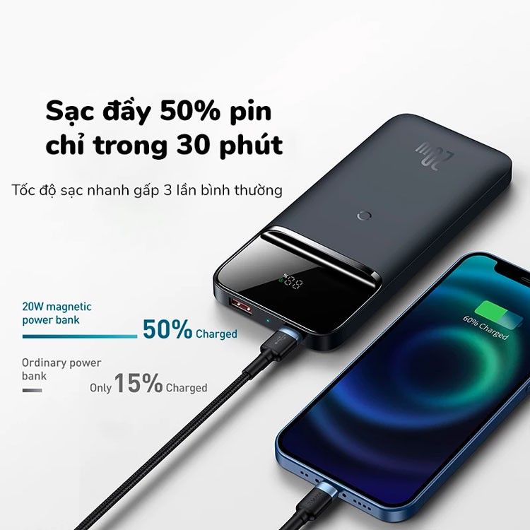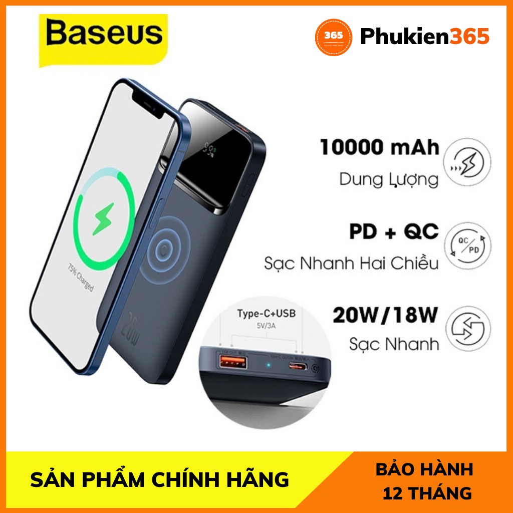 - Tên sản Phẩm : Pin Sạc Dự Phòng Không Dây Baseus Dung Lượng 10000mAh Sạc Nhanh 20W Cho Iphone 12