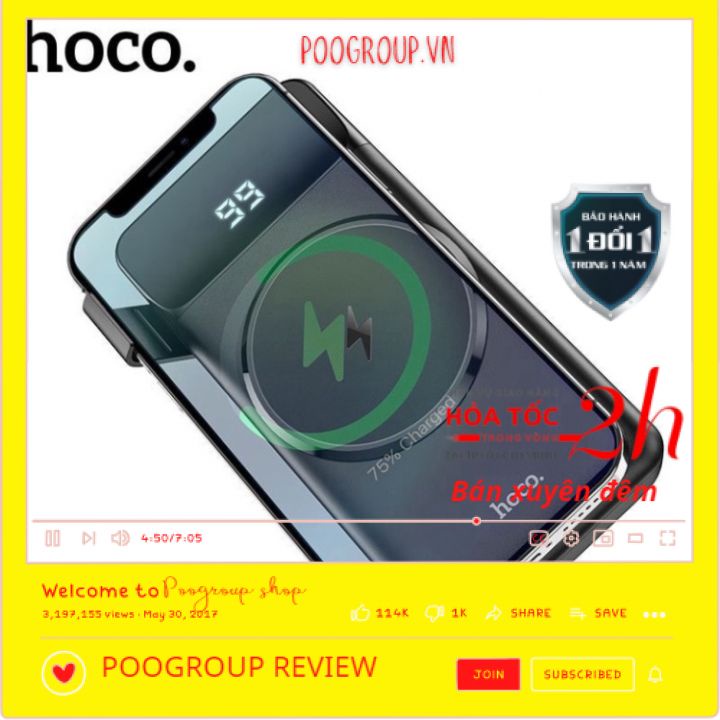 Giới thiệu Pin Sạc Dự Phòng Không Dây Hoco J76 10.000mAh - Hỗ Trợ Sạc Nhanh QC3.0 và PD20W - Cổng TypeC in/out BH 12TH Poogroup