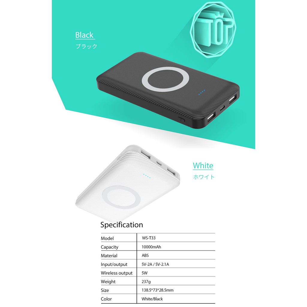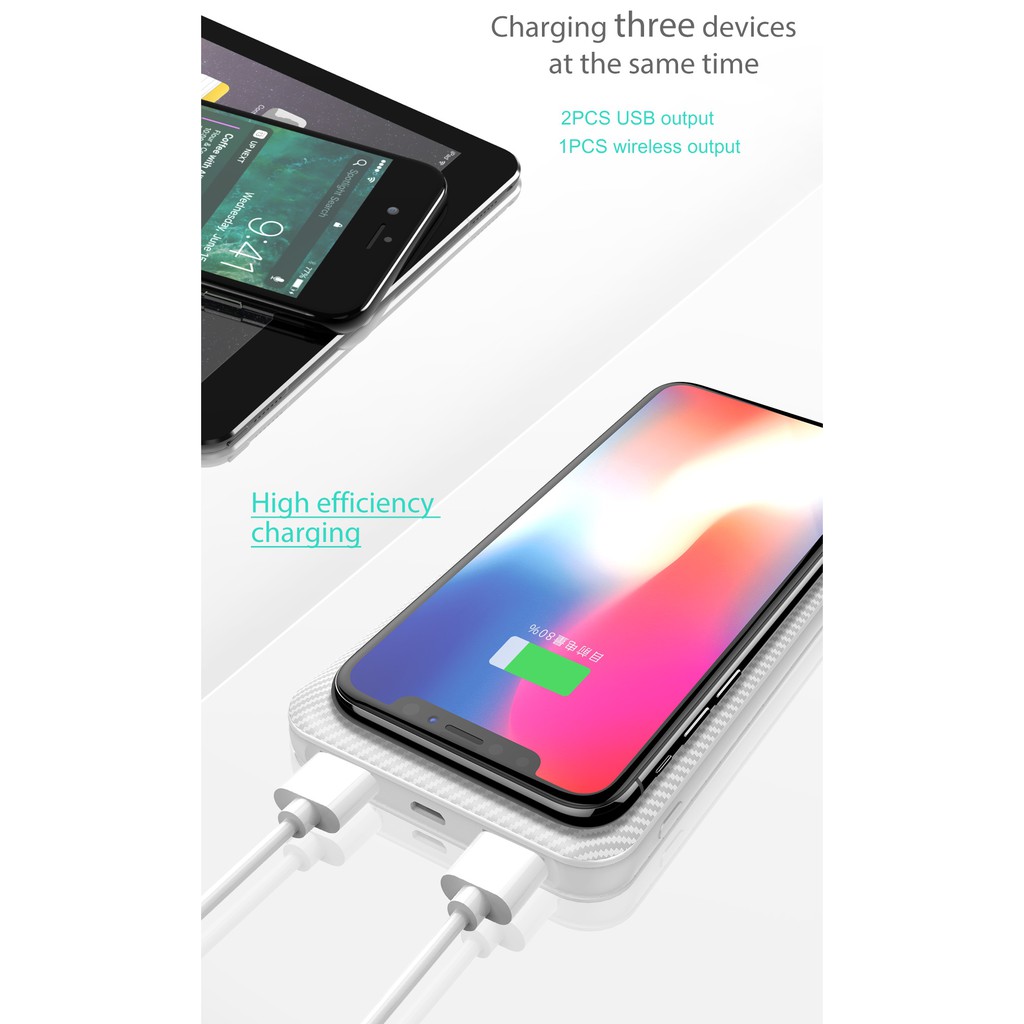 Pin sạc dự phòng không dây IBESKY WS-T33 10000mAh siêu mỏng, 2 cổng sạc - Hàng chính hãngDù được đánh giá là có tính di động khá cao, do không phải kết nối cáp vướng víu, nhưng phần lớn các đế sạc không dây hiện nay vẫn chỉ sử dụng được khi kết nối cố định với nguồn điện. Nhận thấy điểm yếu này,pin sạc dự phòng không dây IBESKY WS-T33 đã được cho ra đời, giúp phục vụ tốt hơn nhu cầu sử dụng của người dùng.