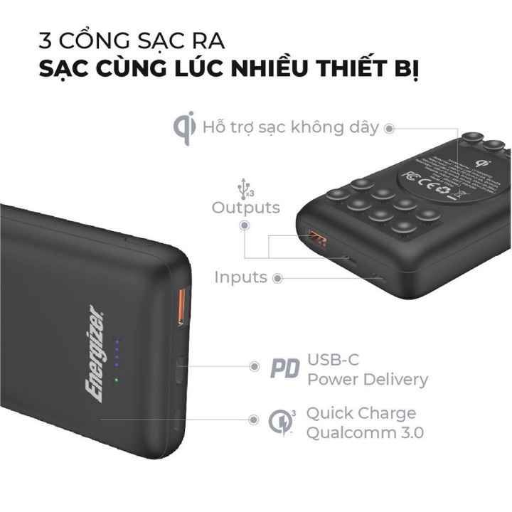 - Dung lượng 10000mAh có thể sạc cho một smartphone tiêu chuẩn lên đến 3 lần, khoảng 36 giờ
