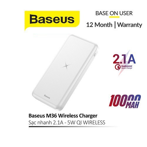 Pin sạc dự phòng không dây Baseus M36 chất liệu nhựa PC dung lượng 10000mAh tích hợp đèn Led hiển thị cho Smartphone"Bảo hành: 12 tháng, 1 đổi 1 trong tháng đầu nếu lỗi do nhà sản xuất.