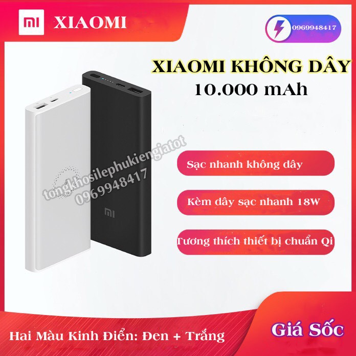 Pin sạc dự phòng không dây Xiaomi 10000mAh - Sạc dự phòng tích hợp sạc không dây 10000mAh Xiaomi lite