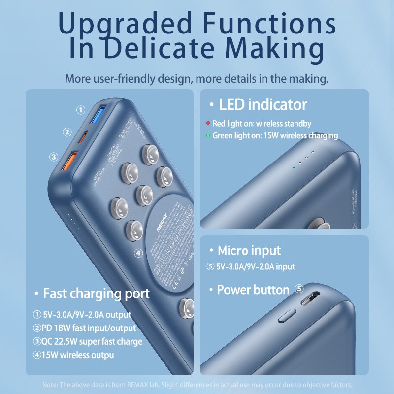 Giới thiệu Pin Sạc Dự Phòng Không Dây Remax RPP-207 20000mAh (2 Inputs 3 Output, PD 18W, QC 22.5W, Wireles Charge 15W)