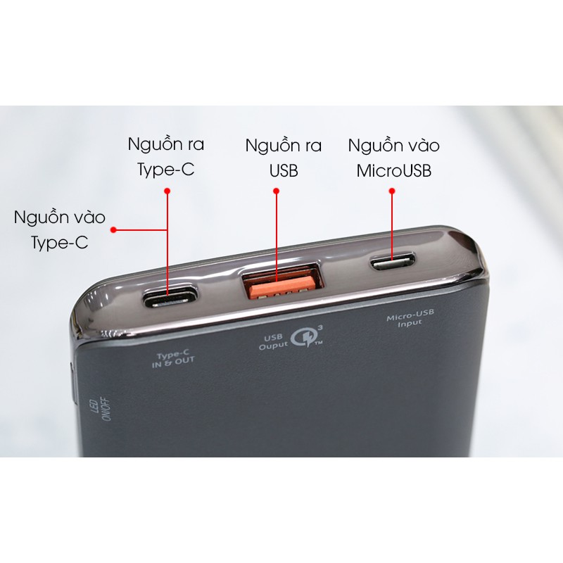 Nguồn vào:Micro USB: 5V - 2A, 9V - 2A, Type C: 5V - 3A, 9V - 2A