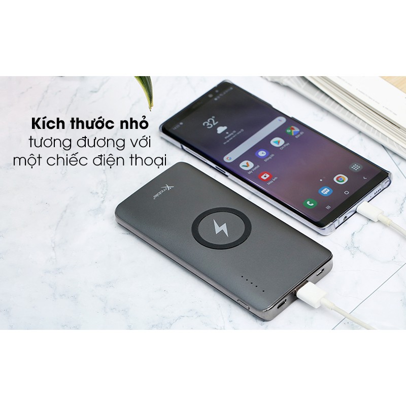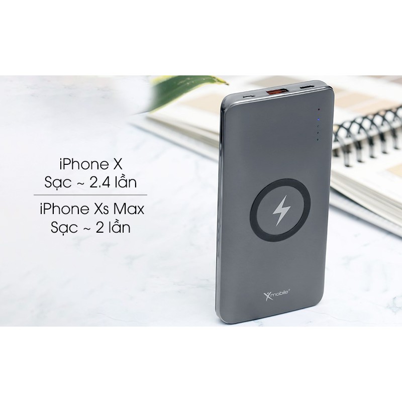 Điện Thoại & Phụ Kiện > Pin sạc dự phòng > 10000 - 20000mAh || Pin sạc dự phòng không dây Polymer 10.000mAh Type C PD QC3.0 Xmobile P66D XámCòn hàng