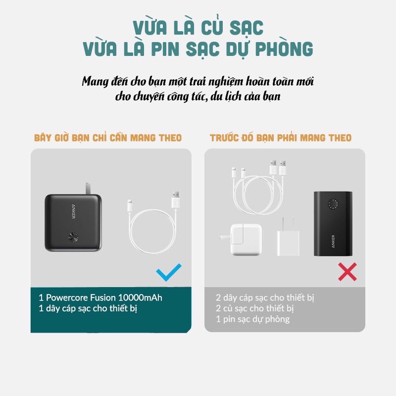 Pin sạc dự phòng kiêm củ sạc nhanh ANKER Powercore Fusion✅ Phân loại:
