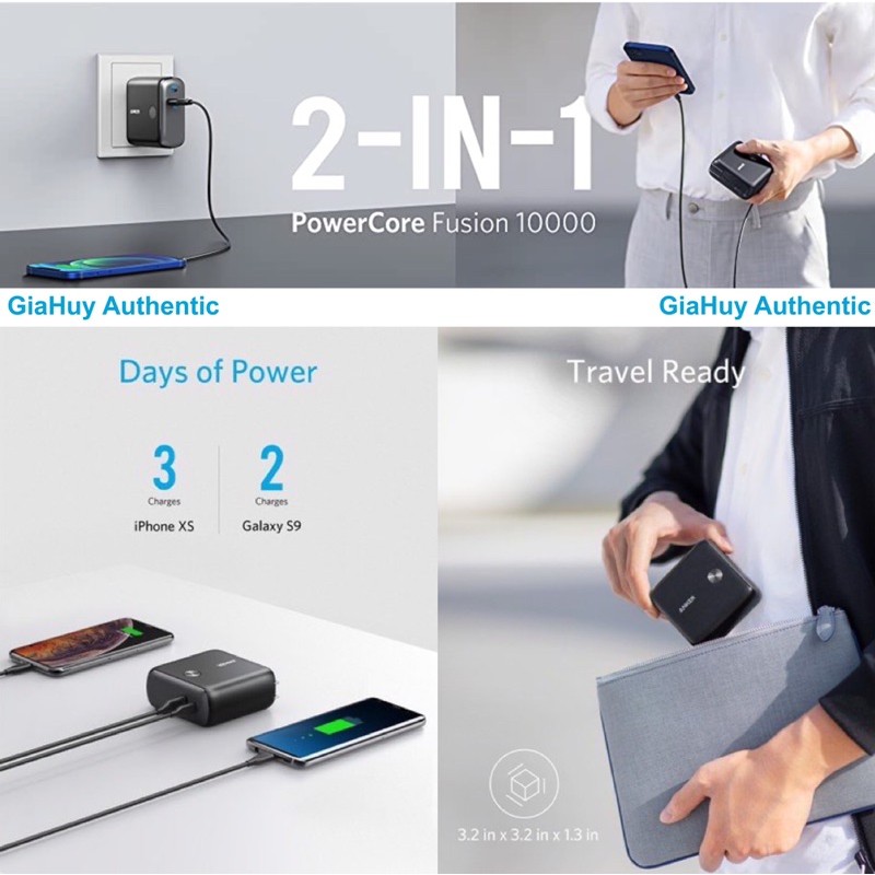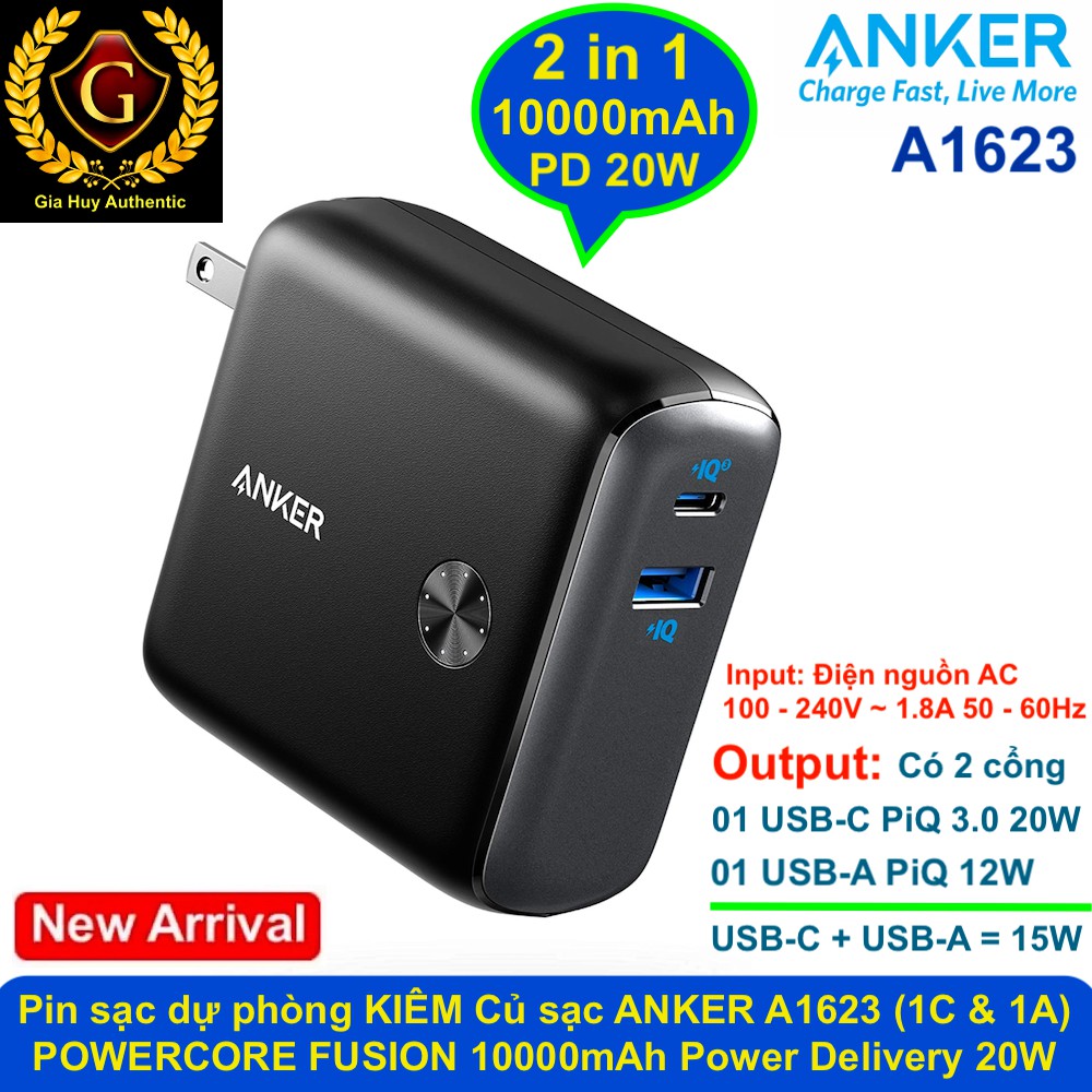 Điện Thoại & Phụ Kiện > Pin sạc dự phòng > 5000 - 10000mAh || Pin sạc dự phòng KIÊM Củ sạc nhanh iPhone 12, iPad Pro ANKER A1623 (1C-1A) POWERCORE FUSION 10000mAh PiQ 3.0 Gen2 20WCòn hàng