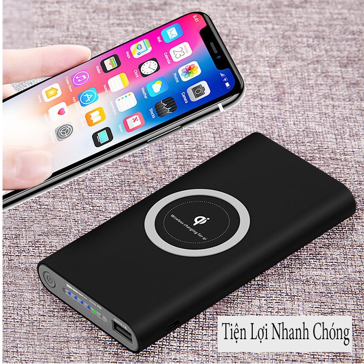 Pin sạc dự phòng không dây 10000mAh kiểu dáng gọn nhẹ, tiện lợi, thuận tiện di chuyển,dành cho thiết bị điện thoại di động,máy tính bảng,Sạc pin nhanh khi sản phẩm có hỗ trợ chuẩn sạc Qi, sạc được nhiều lần cho thiết bị, một cổng USB tốc độ nhanh.