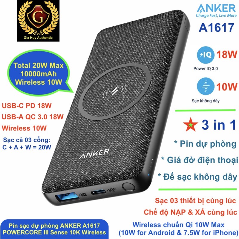 Với cổng USB-A QC 3.0 18W, cổng USB-C PD 18W, và Sạc không dây chuẩn Qi 10W, A1617 mang đến cho bạn sự lựa chọn chưa từng có về cách bạn sạc. Bạn thậm chí có thể sử dụng tất cả chúng cùng một lúc để sạc 3 thiết bị đồng thời.