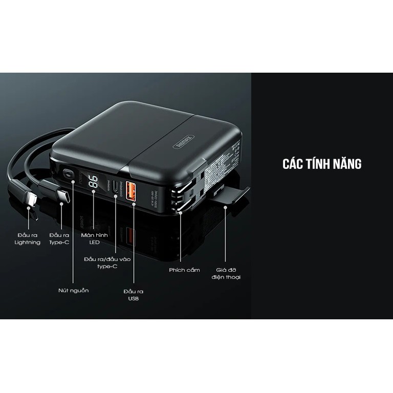 Giới thiệu Pin sạc dự phòng kiêm giá đỡ Remax RPP-20 15000mAh kèm 2 cáp Output, QC3.0 và PD18W