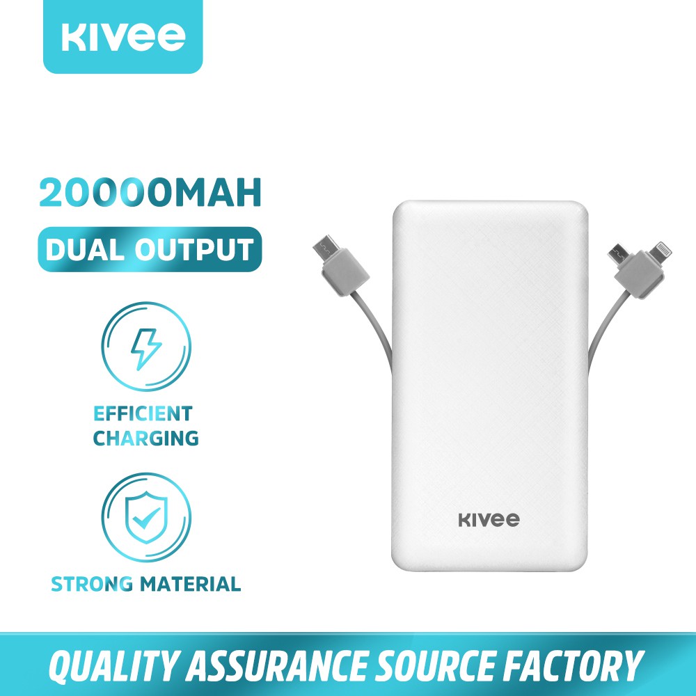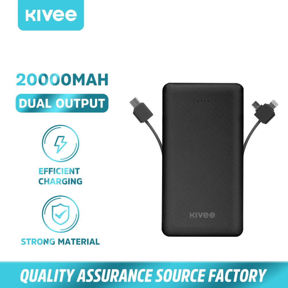 Pin sạc dự phòng KIVEE PT202 20000mah 12w với dây cáp sạc tiện dụng có đèn LED báo nguồn bảo hành 6 tháng