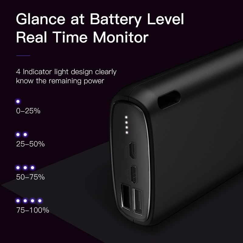 • Dung lượng lớn: Pin sạc dự phòng này có thể sạc iPhone X 5 lần, Samsung S9 5 lần, Huawei P20 4,4 lần. (Dữ liệu trên chỉ mang tính chất tham khảo, thời gian sạc cụ thể của các dòng điện thoại khác nhau sẽ khác nhau) Phù hợp cho đi làm, đi du lịch, bạn không phải lo lắng về mức pin của điện thoại sẽ cạn kiệt.