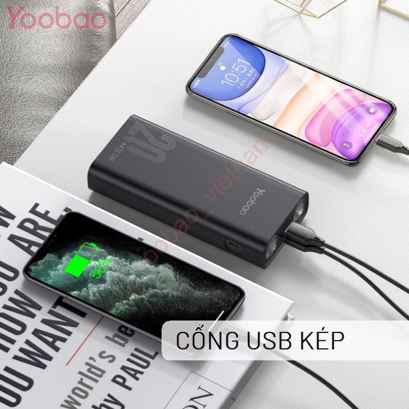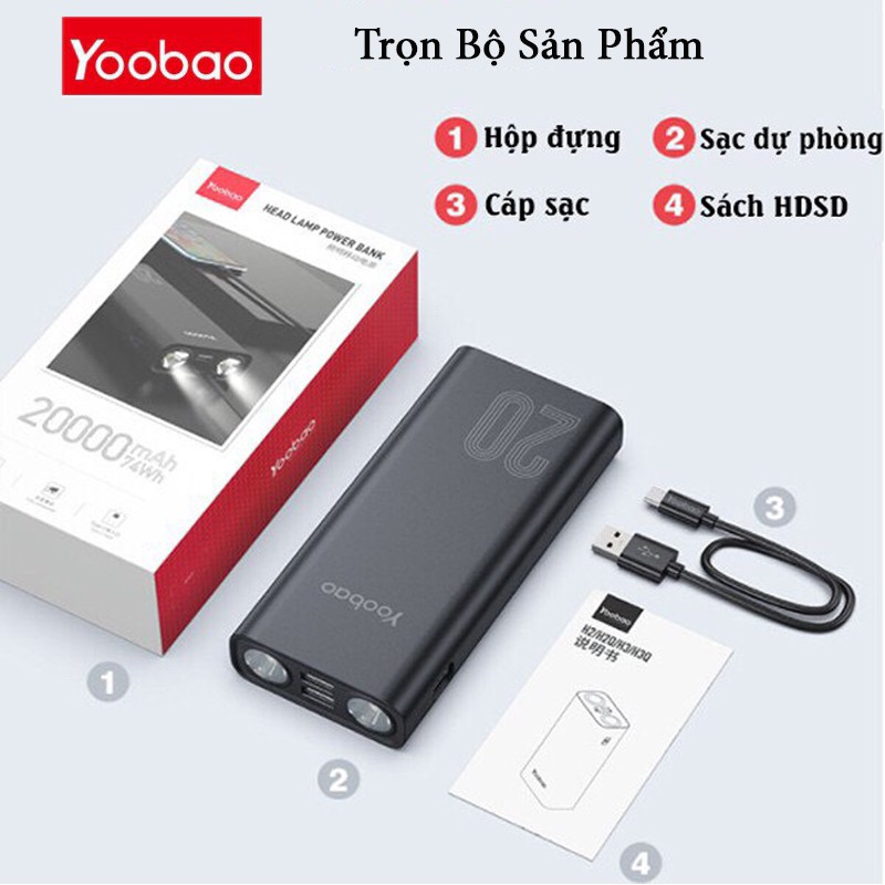Pin Sạc Dự Phòng Yoobao L20 20000mAh Tích Hợp 2 Đèn LED Siêu Sáng Chính Hãng