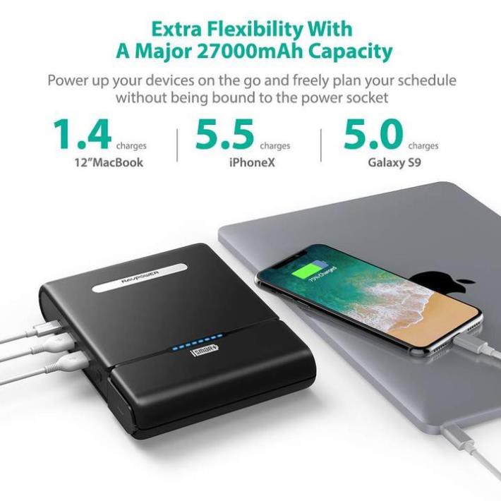 Pin sạc dự phòng chính hãng RAVPOWER PB-055-27000mAh-Những ưu điểm vượt trội: