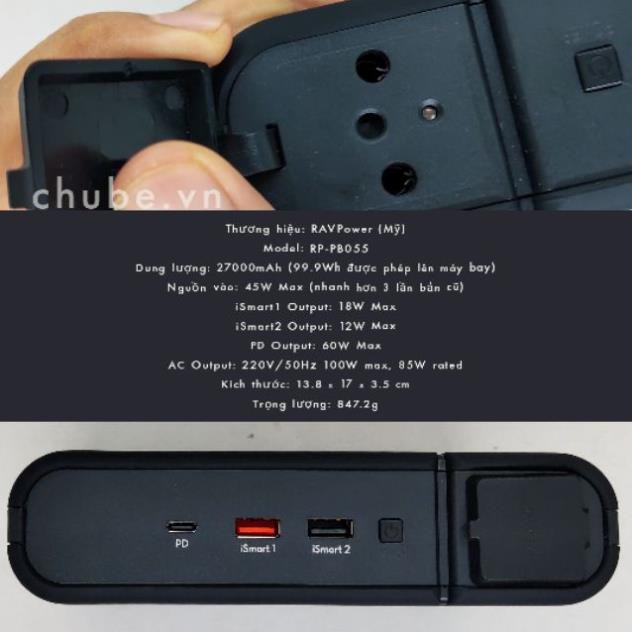 Giới thiệu Pin sạc dự phòng Laptop, Macbook Ravpower RP-PB055 27000mAh 100W (new)