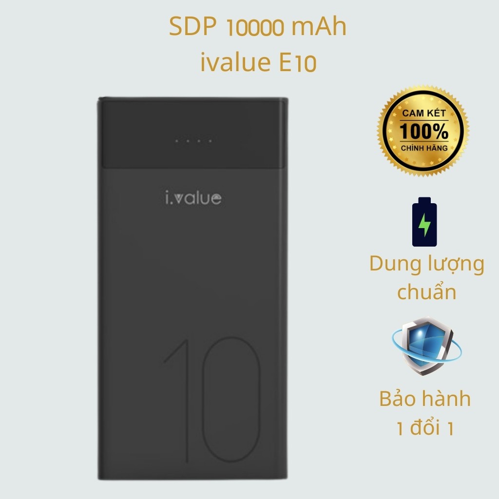 Điện Thoại & Phụ Kiện > Phụ kiện > Sạc dự phòng & Pin > Sạc dự phòng || Pin sạc dự phòng Li-polymer 10000mAh ivalue E10 Trắng - Hàng chính hãngCòn hàng