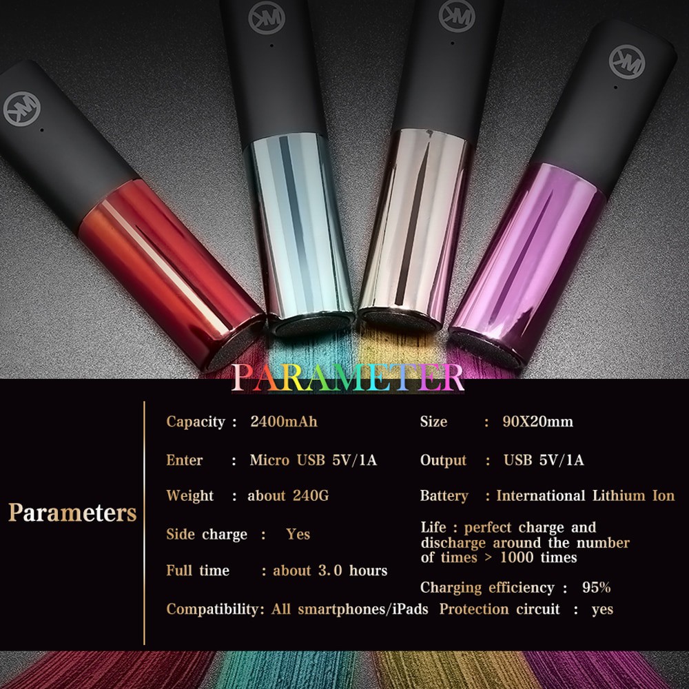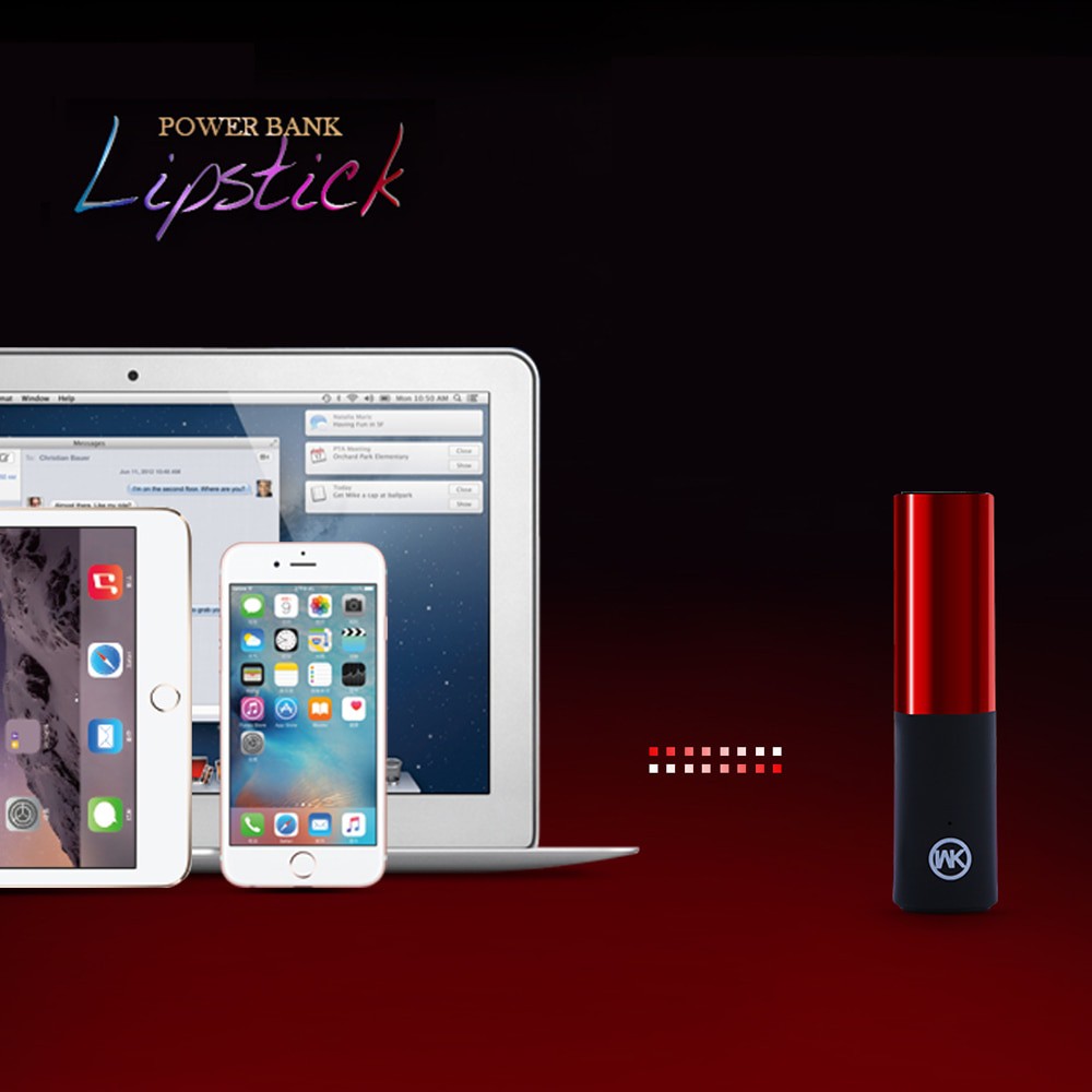 PIN SẠC DỰ PHÒNG LIPSTICK POWER BANK 2400mAh THƯƠNG HIỆU WK DESIGNWK Design là một brand khá nổi tiếng với các dòng sản phẩm có thiết kế thời thượng, chất lượng có độ tin cậy cao. Ngoài tai nghe, HAPIMALL còn phân phối thêm dòng sạc dự phòng thời trang dành cho phái đẹp. Sản phẩm chú trọng về tính thẩm mĩ và sở thích cho chị em nhiều hơn là đầu tư vào dung lượng, do vậy, nếu bạn là tín đồ đam mê thời trang, yêu thích phụ kiện và không màn đến dung lượng thì đừng nên bỏ qua item độc đáo này nhé!