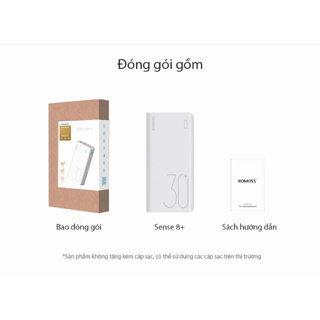 Giới thiệu Pin sạc dự phòng lõi Polymer Romoss Sense 8+ 30000mAh hỗ trợ sạc nhanh QC3.0 (Trắng) - Hãng phân phối chính thức