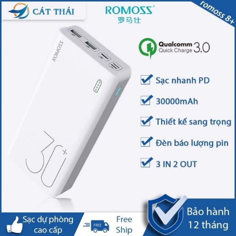 Điện Thoại & Phụ Kiện > Phụ kiện > Sạc dự phòng & Pin > Sạc dự phòng || Pin sạc dự phòng lõi Polymer Romoss Sense 8+ 30000mAh hỗ trợ sạc nhanh QC3.0 (Trắng) - Hãng phân phối chính thứcCòn hàng