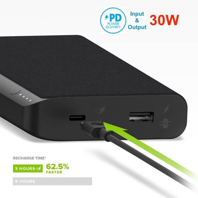 - Công nghệ sạc nhanh và an toàn với cổng USB-C PD Input / Output lên đến 30W từ Mophie