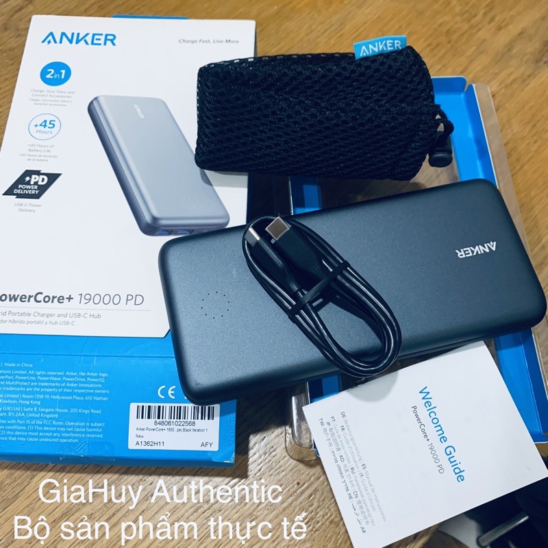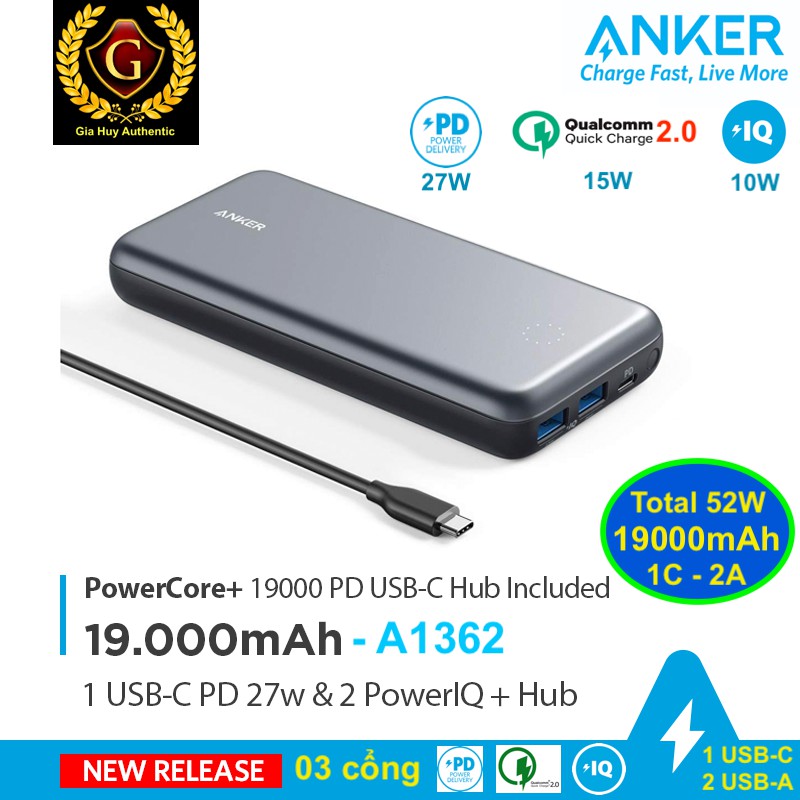 Pin sạc dự phòng Macbook Air, iPad Pro, iPhone 12 Series ANKER PowerCore+ 19000mAh PD 27W, tích hợp HUB USB - A1362
