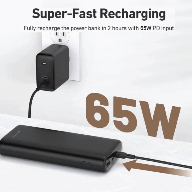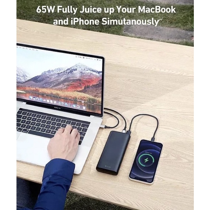 Với 01 cổng USB-C In/Out PD 3.0 65W; 01 cổng USB-C Out PD 3.0 18W và 01 cổng USB-A QC 3.0 18W. Bạn có thể sạc nhanh 02 thiết bị cùng lúc.