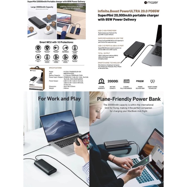Giới thiệu Pin sạc dự phòng MacBook Pro 13'' 2020, iPhone 13 Series MAZER Infinite.Boost PowerULTRA 20000mAh PD 3.0 65W (2C & 1A)