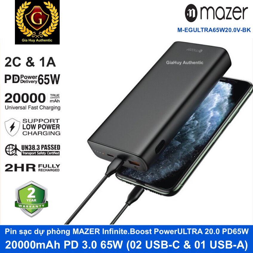 Điện Thoại & Phụ Kiện > Phụ kiện > Sạc dự phòng & Pin > Sạc dự phòng || Pin sạc dự phòng MacBook Pro 13'' 2020, iPhone 13 Series MAZER Infinite.Boost PowerULTRA 20000mAh PD 3.0 65W (2C & 1A)Còn hàng
