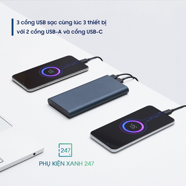 ✔ sạc dự phòng Xiaomi Gen 3 hỗ trợ thêm cổng sạc hai chiều USB – C