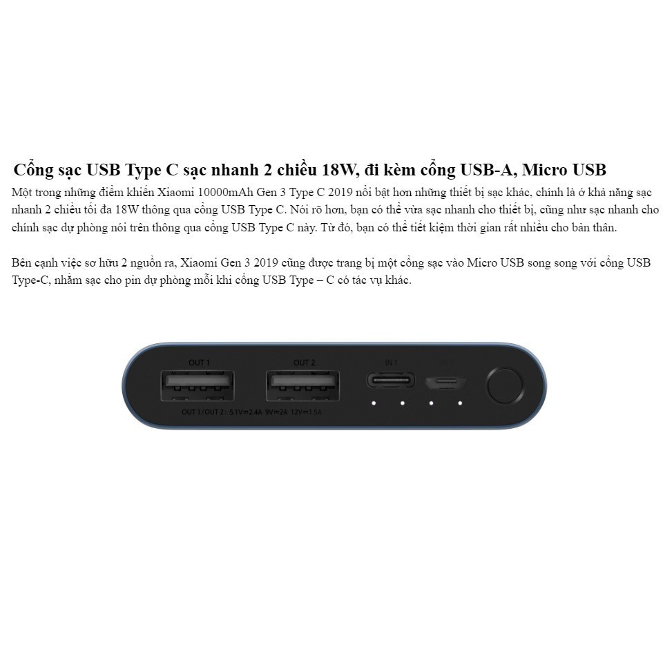 ✔ sạc dự phòng Xiaomi Gen 3 hỗ trợ thêm cổng sạc hai chiều USB – C