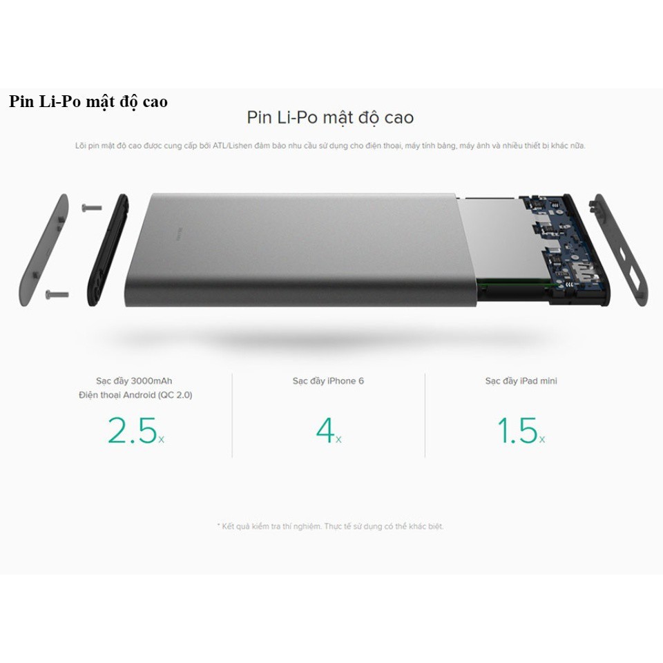 Mi Gen 3 dung lượng 10000mah, sạc siêu nhanh, an toàn cho pin điện thoại