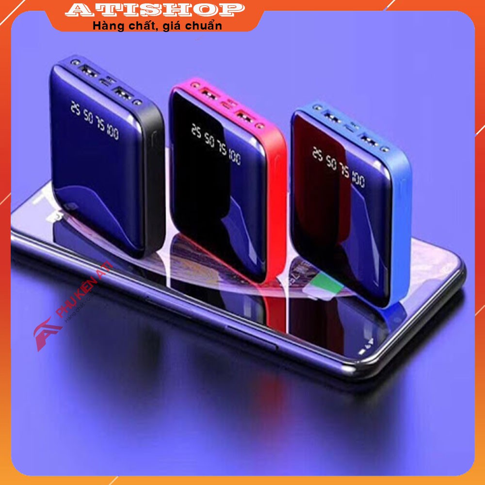 Pin sạc dự phòng mini 10.000 Mah dung lượng thực hiệu suất 99% hỗ trợ sạc nhanh 2.1A LCD hiển thị có 2 đèn lED