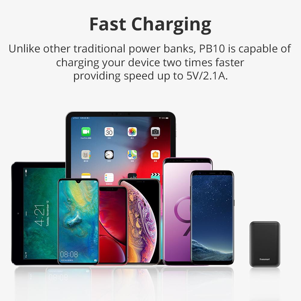 Sạc nhanh: không giống như các ngân hàng điện truyền thống khác, PB10 có khả năng sạc thiết bị của bạn nhanh hơn hai lần, cung cấp tốc độ lên tới 5V / 2.1A.