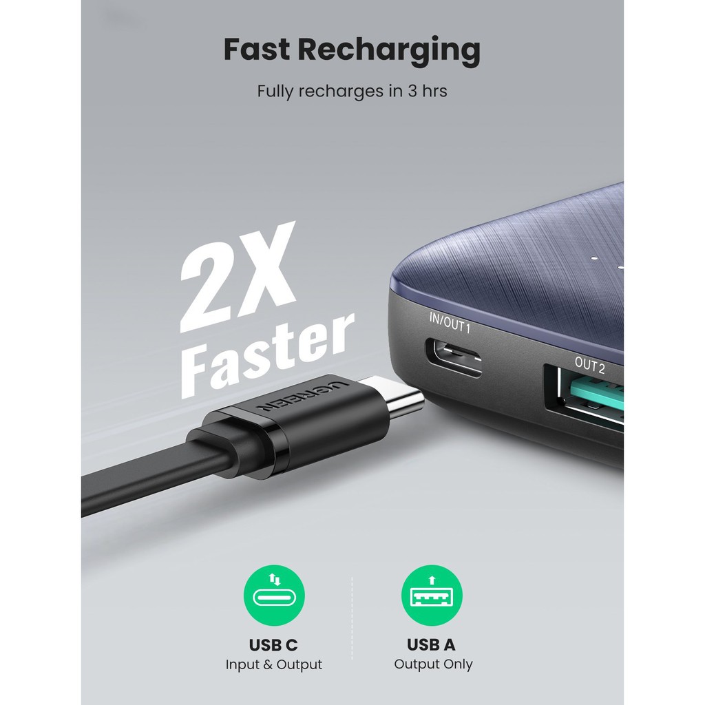Pin sạc dự phòng mini 10000mAh 2 cổng Ugreen 80749 - PD + QC 3.0 18W Sạc nhanh iPhone 12 - Hapustore