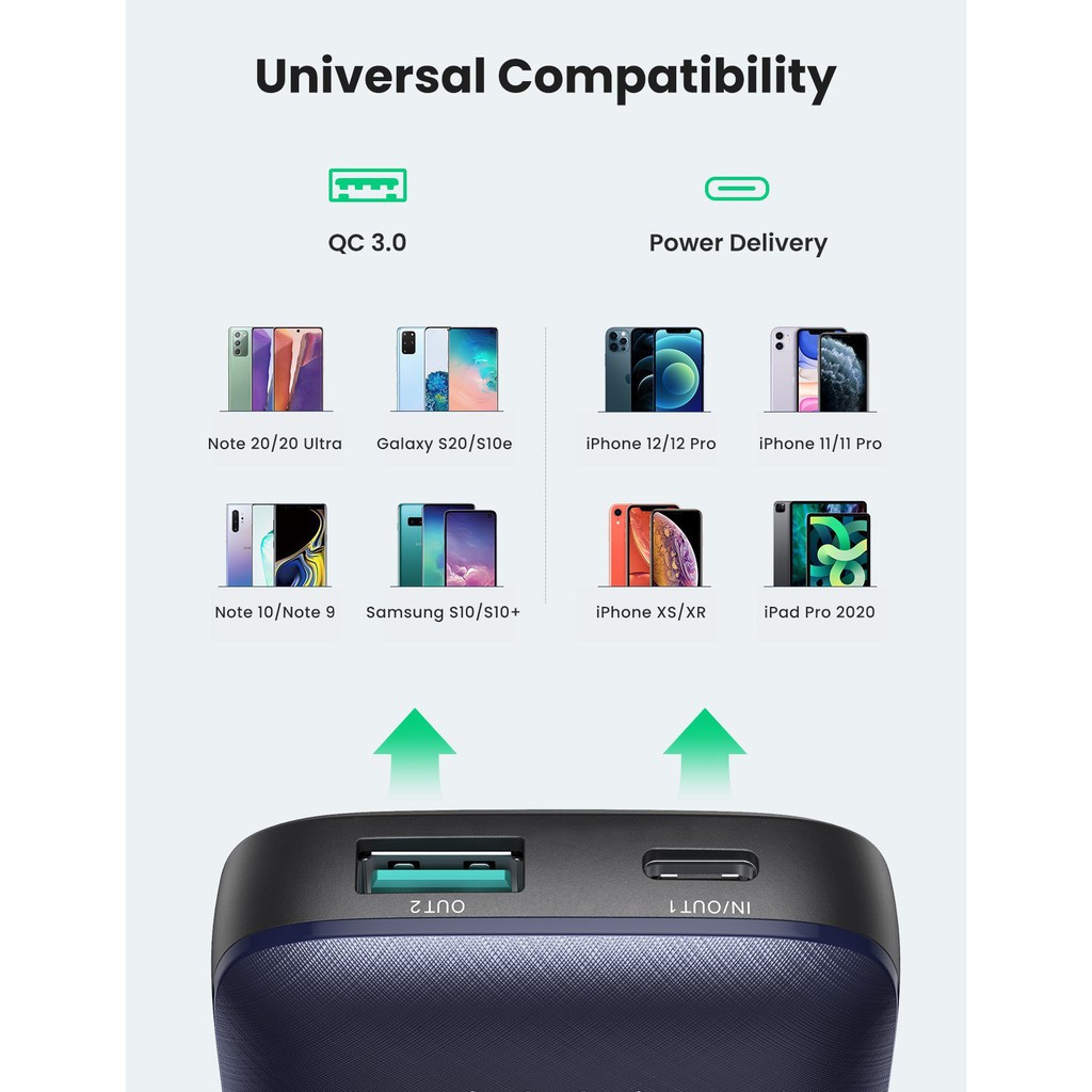 Giới thiệu Pin sạc dự phòng mini 10000mAh 2 cổng Ugreen 80749 - PD + QC 3.0 18W Sạc nhanh iPhone 12 - Hapustore