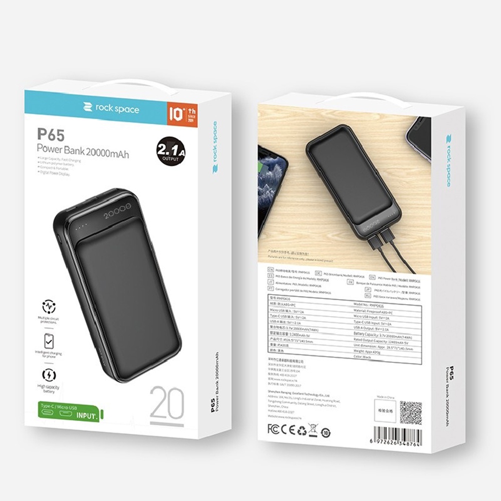 Pin sạc dự phòng mini 20000mAh Rockspace P65 - iAll Store